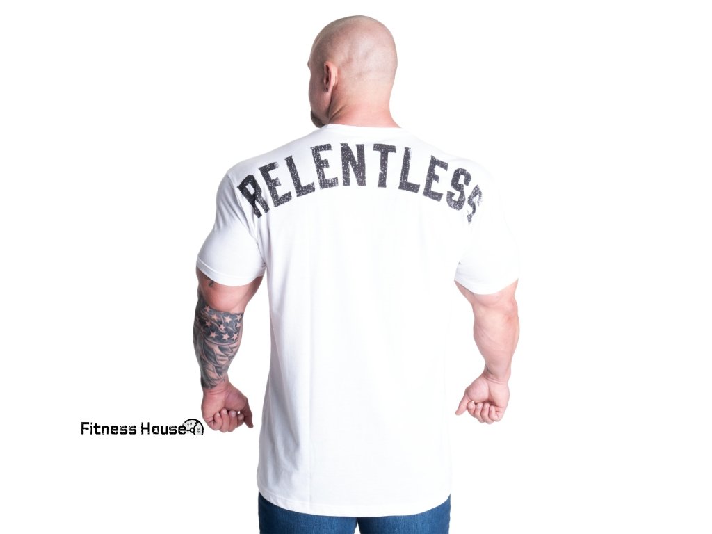 Tričko Gasp Skull standard tee je klasické tričko vyrobené z perfektní pružné směsi bavlny a polyesteru. Je tenké a příjemné na dotyk. Díky materiálu perfektně drží svůj tvar i barvu. Přes ruce a ramena užší pro správný atletický look! Velký potisk s lebkou vpředu a nápis Relentless přes ramena.